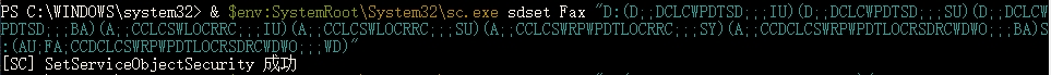 & $env:SystemRoot\System32\sc.exe sdset SWCUEngine "D:(A;;CCLCSWRPWPDTLOCRRC;;;SY)(A;;CCDCLCSWRPWPDTLOCRSDRCWDWO;;;BA)(A;; CCLCSWLOCRRC;;;IU)(A;;CCLCSWLOCRRC;;;SU)S:(AU;FA;CCDCLCSWRPWPDTLOCRSDRCWDWO;;;WD)"最后更新于